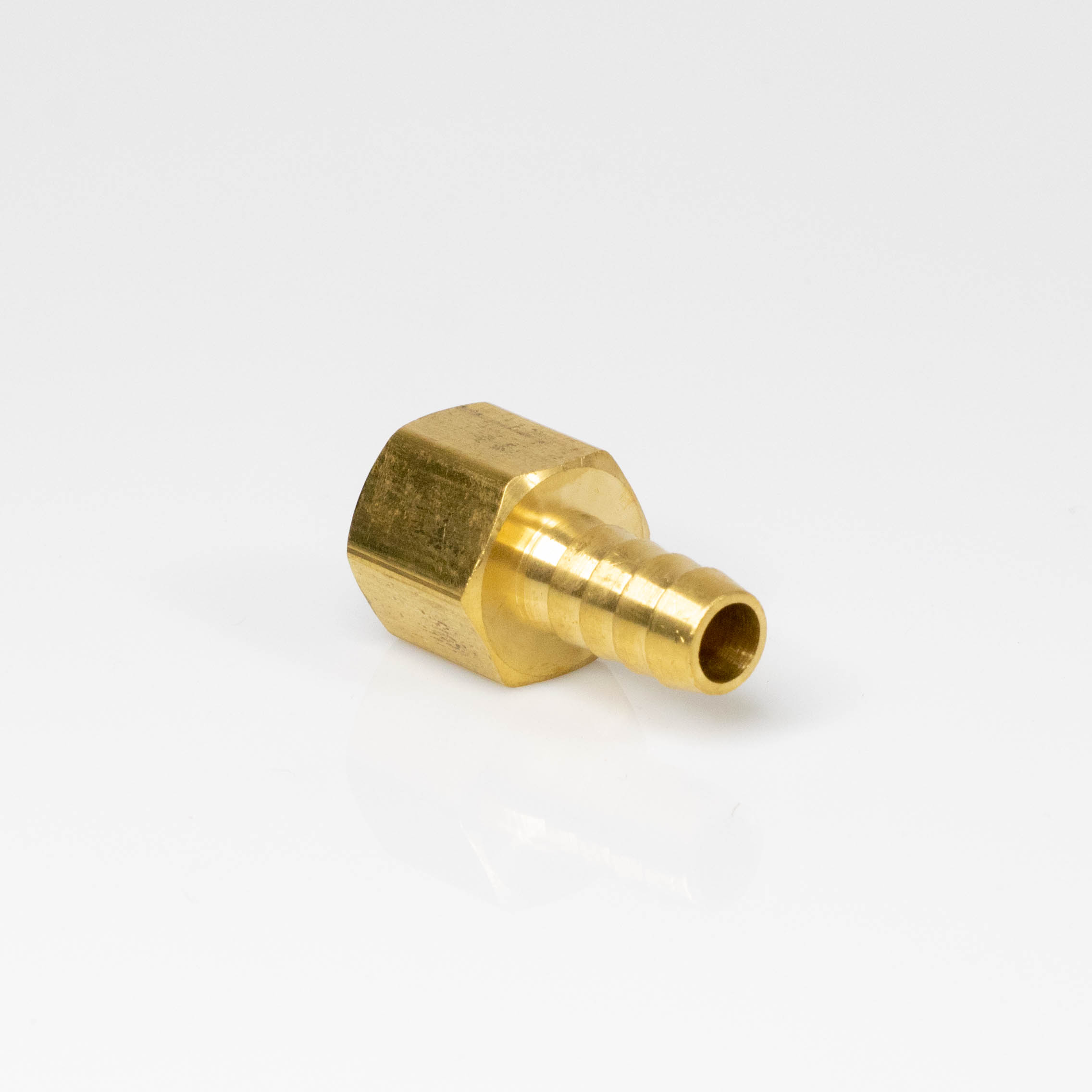 Conector recto hembra de 3/8″ de bronce para manguera, ideal para conexiones seguras en sistemas de gas.